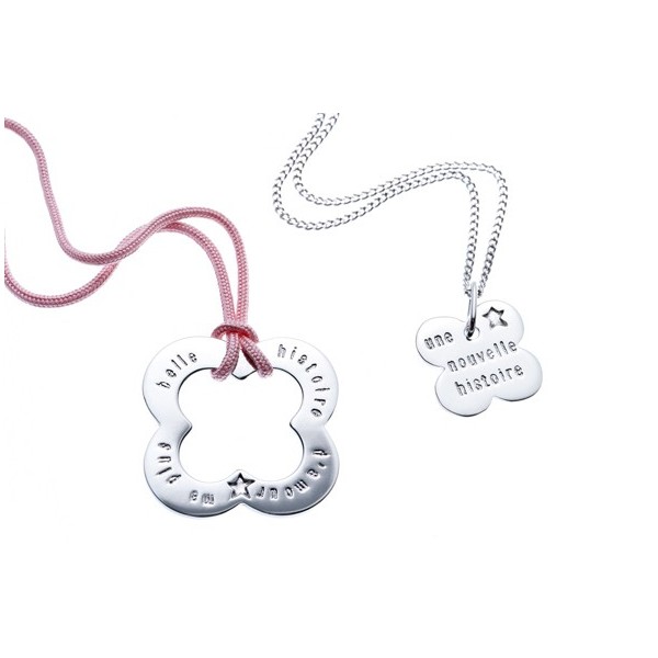 "une nouvelle histoire" gravé sur le bijou de l'enfant
